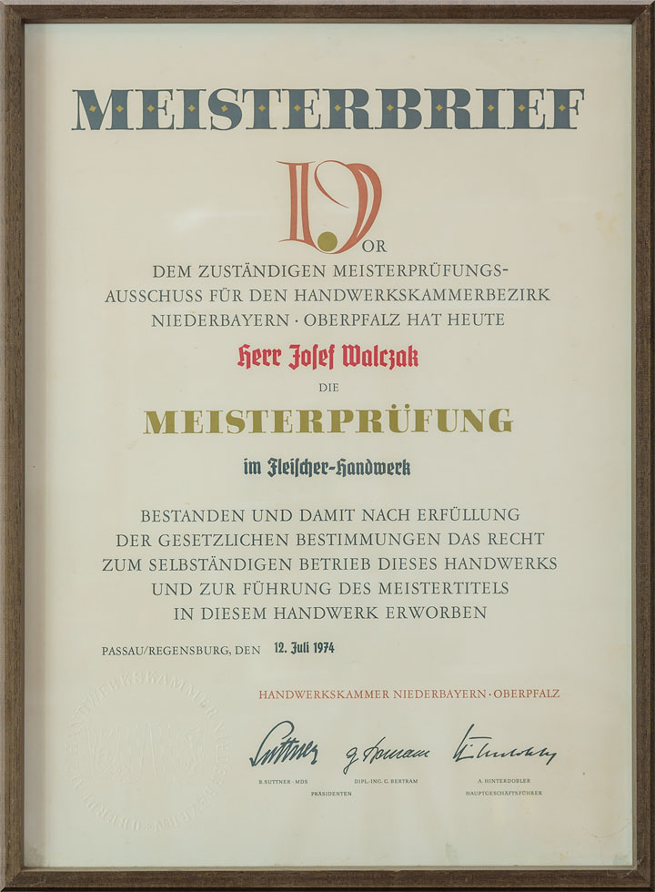 Im Geburtsjahr des deutschen „Wirtschaftswunders“, entschließt sich unser Firmengründer Josef Walczak (Senior) zur Pacht einer Fleischerei in Recklinghausen - mitten im damals aufstrebenden Ruhrgebiet. Bereits sieben Jahre später erwirbt er eine Immobilie im nahe gelegenen Neheim-Hüsten, die entsprechend den damals modernsten Standards umgebaut wird.